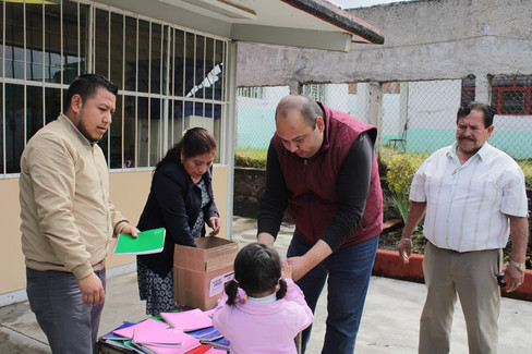 El presidente municipal, Amado Gómez, en compañía del cuerpo edilicio, Blas Padilla, Regidor de educación, Bulmaro Sánchez, Regidor de obra, Luz María Olmos, Regidora de salud y Rigoberto Hernández, Regidor de comercio visitaron varias instituciones educativas llevando kit de útiles escolares, los cuales fueron entregados a los pequeños que inician su educación.